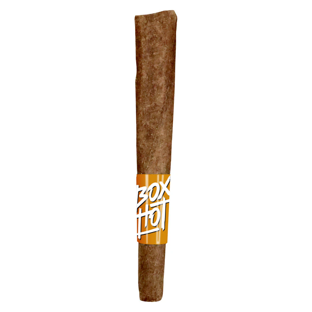 BOXHOT PRESENTS: the Peach OG Stubbies 3-pack of juicy half-gram blunts. Pack a stack of these baby blunts, injection-infused with the same top-notch THC distillate and the classic Peach OG botanical terp blend from BOXHOT that you know and love. These beasts boast a glazed peach flavour with a fruity aroma, complemented by a complex profile of earthy undertones. Wrapped in all-natural, highly durable chamomile wraps, these lil' brothers of the fan fave Peach OG Fatties deliver that same consistent ass-kicking burn every time.