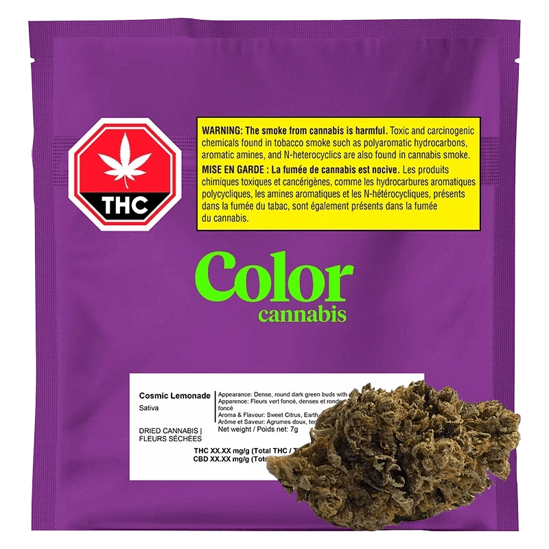 Color's Cosmic Lemonade is a sativa-dominant cross of Jean Guy and Alien Dog. Cosmic Lemonade's dense, round dark green buds with dark orange stigmas produce a pungent, sweet citrus aroma with notes of earth and gas. Our elevated growing practices, including full temperature and humidity control and hang-drying, guarantee a consistent and enjoyable smoking experience. Cultivated with care and nitrogen packaged for maximum freshness.
