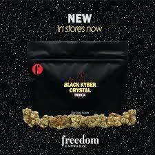 Freedom Cannabis' Black Kyber Crystal is an Space Odessey cultivar which crosses Skywalker x Black Triangle. This indica dominant strain (Freedom's Latitude Product Line) exudes a spicy, earthy, almost lemony aroma and a piney, citrus like flavour. Freedom's 14 gram Black Kyber Crystal is packaged in mylar and represents the best of the Space Wars.