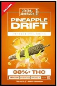 Surf's up! Pineapple Drift is a riptide of bold pineapple and 60%+ THC - get drenched in tropical flavour that hits as hard as a tidal wave. G.A. Ultra-Infused Pre-Rolls are made using milled whole flower, dusted in premium kief, boosted with botanical terpenes, and infused with diamonds to deliver our most potent pre-roll yet. Go Higher than ever before with 60%+ THC and the G.A. flavours you love.