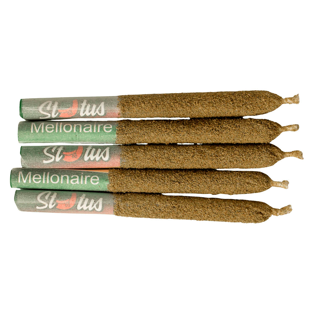 Who wants to be a Mellonaire! Status brings you this high potency liquid diamond infused melon-licious experience with 5 beautiful kief coated pre rolls in one package. With the flavour of a fresh cut melon on a summer's day, these pre rolls will quench your thirst with a sweet and refreshing smoke. With a specially designed cone and high end flower, you can expect a great and even smoke that you won't be disappointed in!