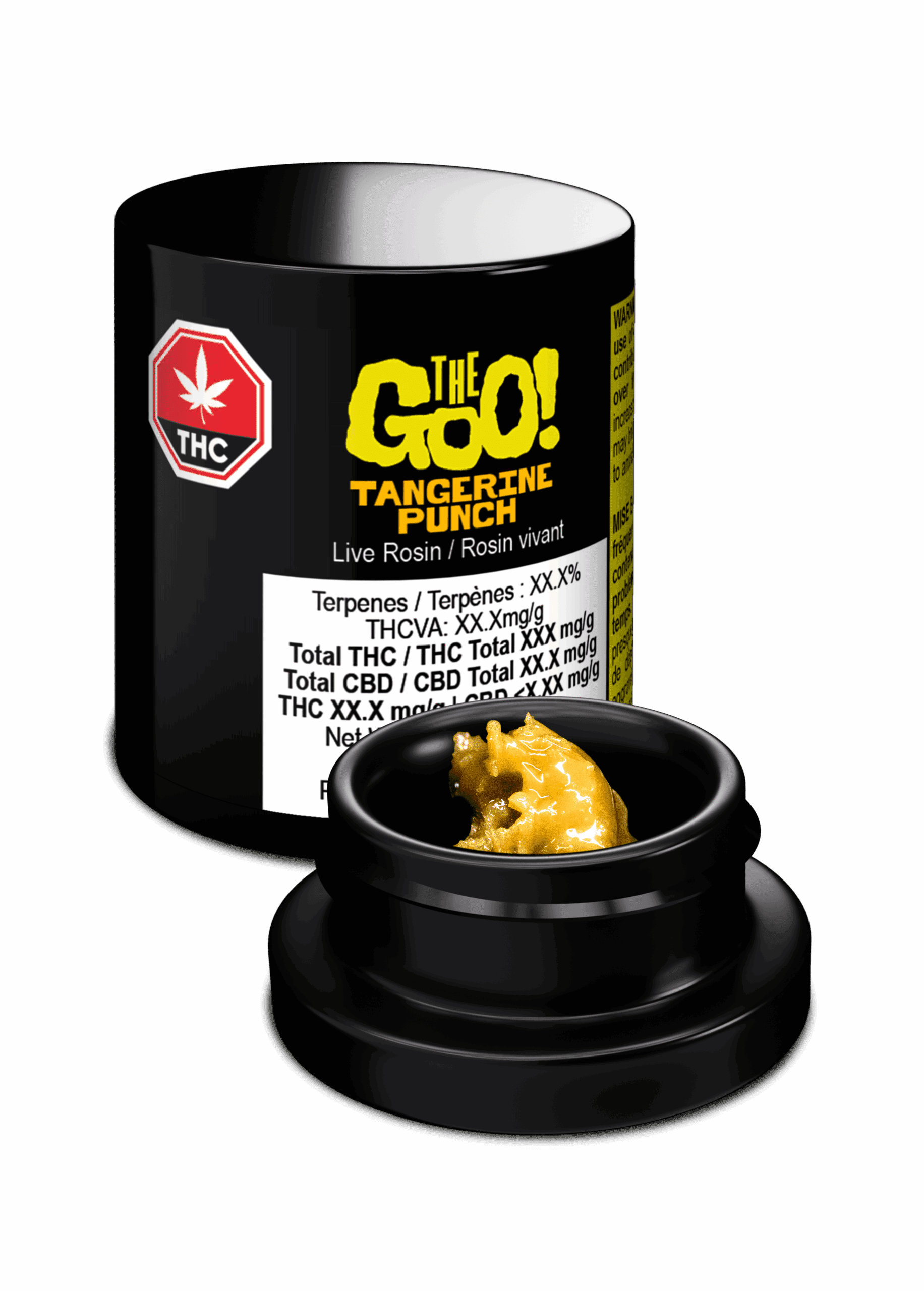 The Goo! Tangerine Punch delivers a bright, invigorating, and powerfully fruity live rosin experience. This vibrant sativa strain features significant levels of THCVA alongside THC, with a bold fruit-forward flavour. Crafted in Alberta by Crop Circle Cannabis using a 100% solventless process, it is made from fresh-frozen whole flower, extracted with ice water, and pressed at low temperatures to preserve terpenes and cannabinoids for a true-to-plant experience. Cold-cured and whipped for consistency, Tangerine Punch is perfect for discerning consumers seeking a bright and flavourful live rosin experience.
