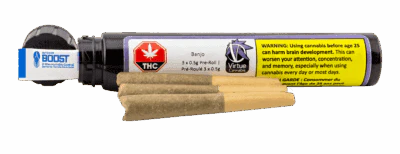 Banjo is a sativa-leaning hybrid crafted from a cross of the classic cultivars Boost and Tangelo. Its terpene-rich profile-led by myrcene, limonene, and caryophyllene-delivers bright citrus and subtle berry notes, finished with a smooth, incense-like undertone.