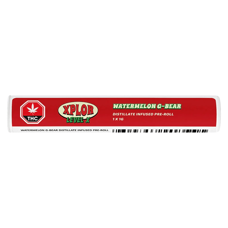 XPLOR your wild side with Watermelon G-Bear Distillate Infused Pre-rolls. Each draw provides a reminiscent sweet watermelon gummy taste. Now boosted in potency!
